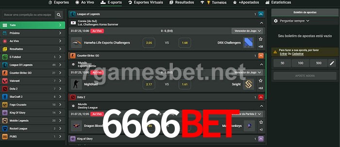 O 6666Bet oferece uma grande seleção de opções de apostas em e-sports com probabilidades competitivas